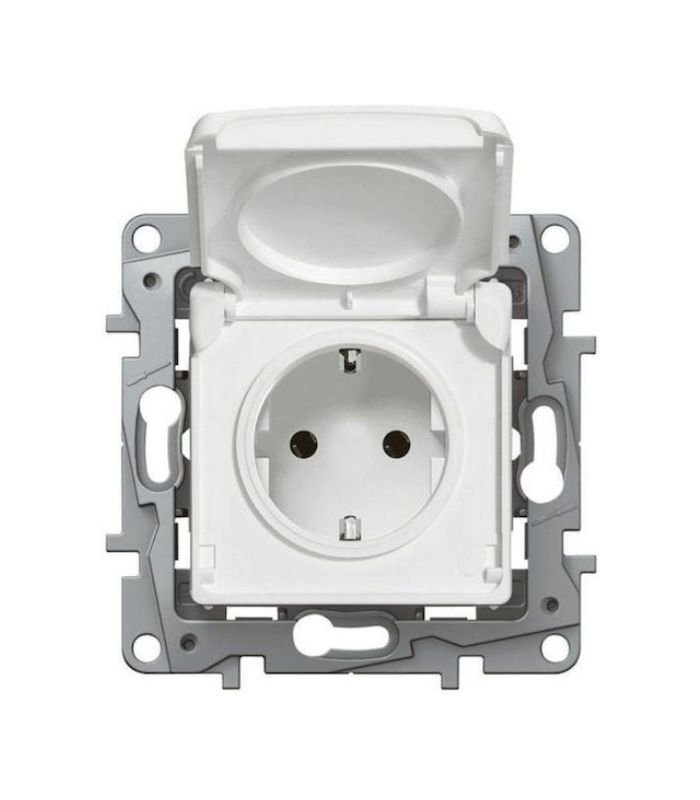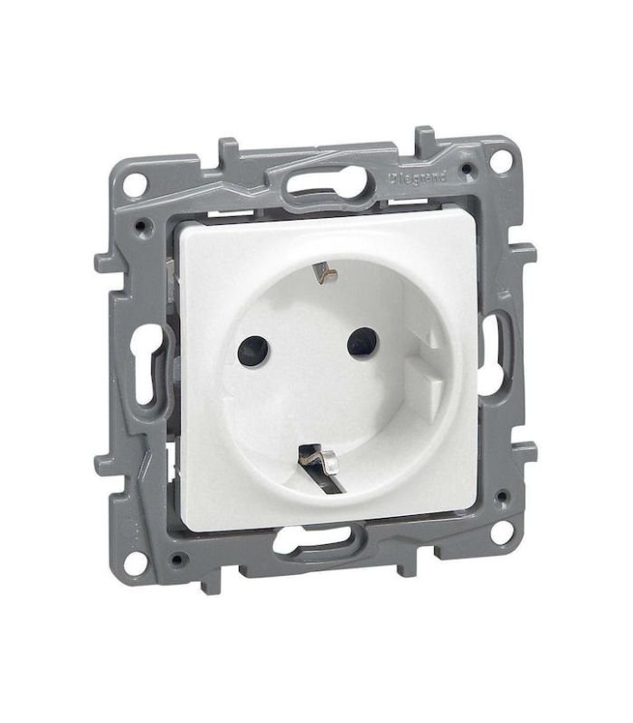 Legrand Niloe Μονή Χωνευτή Πρίζα Ρεύματος Ασφαλείας με Καπάκι Λευκή 764532