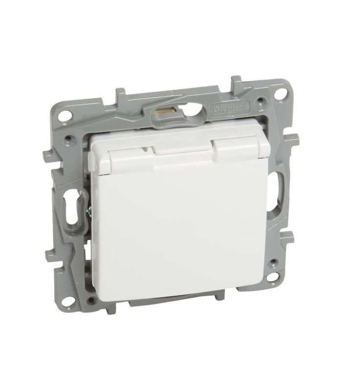 Legrand Niloe Μονή Χωνευτή Πρίζα Ρεύματος Ασφαλείας με Καπάκι Λευκή 764532