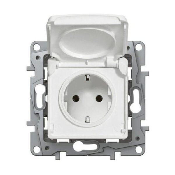 Legrand Niloe Μονή Χωνευτή Πρίζα Ρεύματος Ασφαλείας με Καπάκι Λευκή 764532